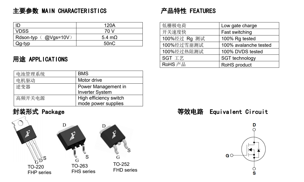 以上4款MOS管型號:FHD80N06B、FHD100N03D、FHD150N03C、FHD120N7F6A的型號參數數據均通過實際進行測試得出,具體在負載開關電路中的使用,建議開發工程師進一步取樣測試。畢竟不同的性能以及需求對應要選擇的MOS管還是會有差異的,詳細參數規格表可登陸“飛虹電子”網址。